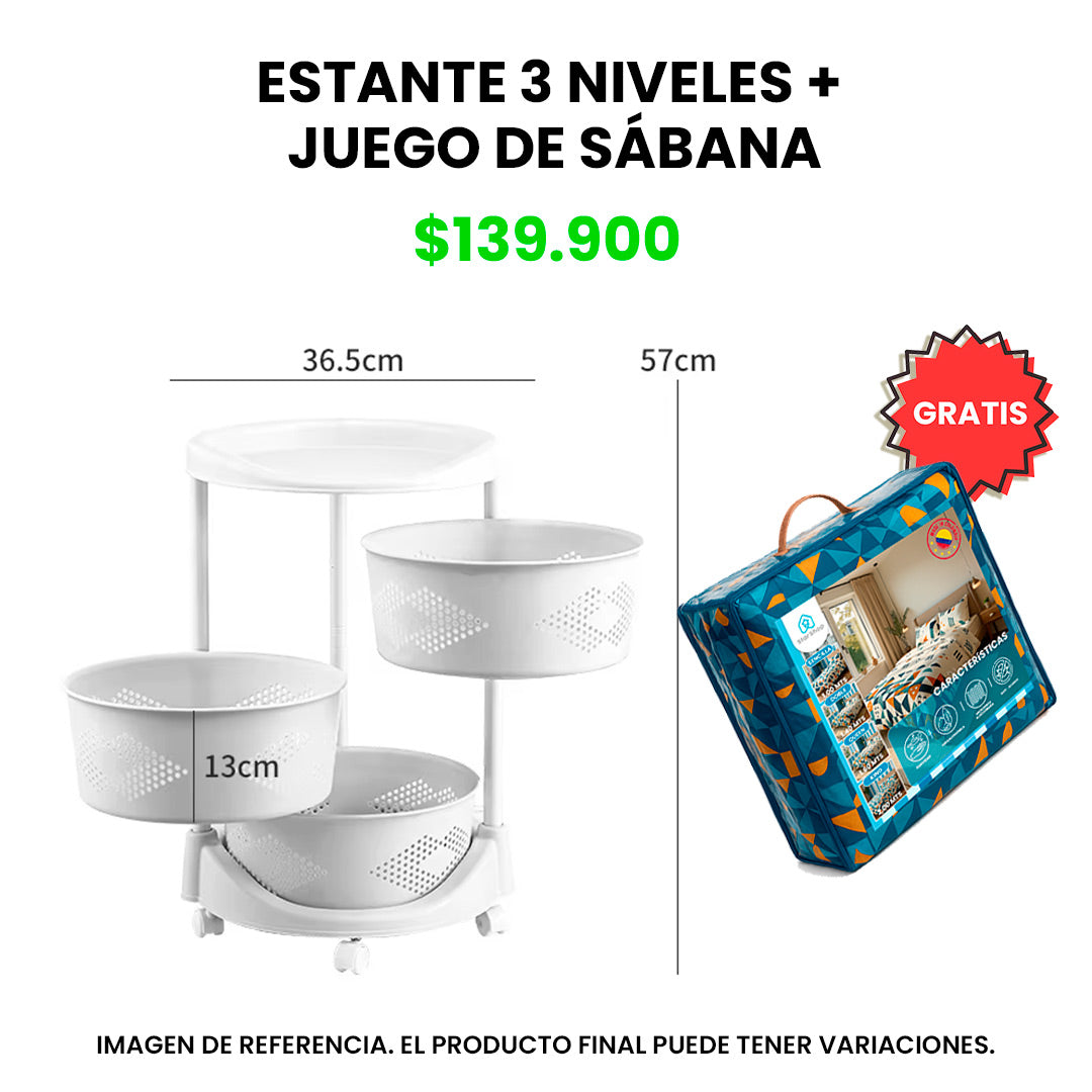 Por la compra de un ESTANTE GIRATORI0 360° y podrás llevar (un juego de sábana).