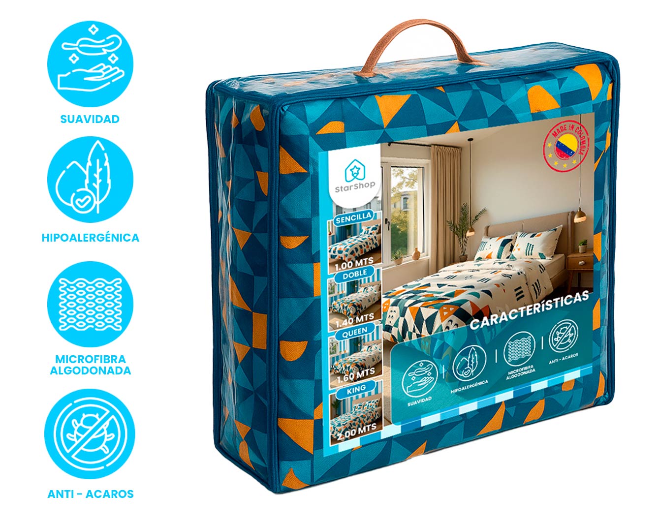 - Son de industria 100% Colombiana, esto nos permite tener control de su calidad y confección.